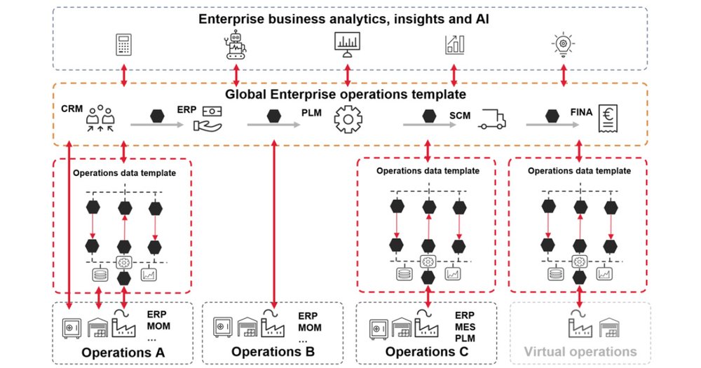 Takie możliwości są możliwe dzięki skalowalnym platformom w chmurze, które integrują aplikacje korporacyjne z danymi MOM w jednolitą cyfrową strukturę. Przeniesienie poziomu 4 do chmury wspiera globalną skalowalność, zaawansowane analizy i planowanie scenariuszy, jednocześnie umożliwiając standaryzację podstawowych struktur danych oraz lokalną konfigurację procesów, w tym wdrożenia zarówno w lokalizacjach w UE, jak i poza nią.